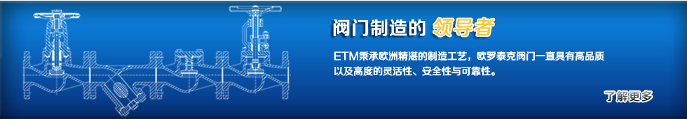 歐羅泰克閥門有限公司(ETMVAL)是一家專業從事蒸汽系統閥門和熱油系統閥門的研發、設計、生產、銷售為一體的新技術型閥門制造商,歐羅泰克閥門坐落于有著”中國泵閥之鄉”美稱的永嘉縣。   ETM全球共有三個重量級銷售中心,分別在法國,土耳其和越南。2013年度閥門銷量高達100000臺,產品涵蓋德標波紋管截止閥-德標止回閥-德標閘閥-德標過濾器和美標波紋管閥門系列。